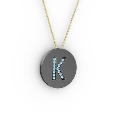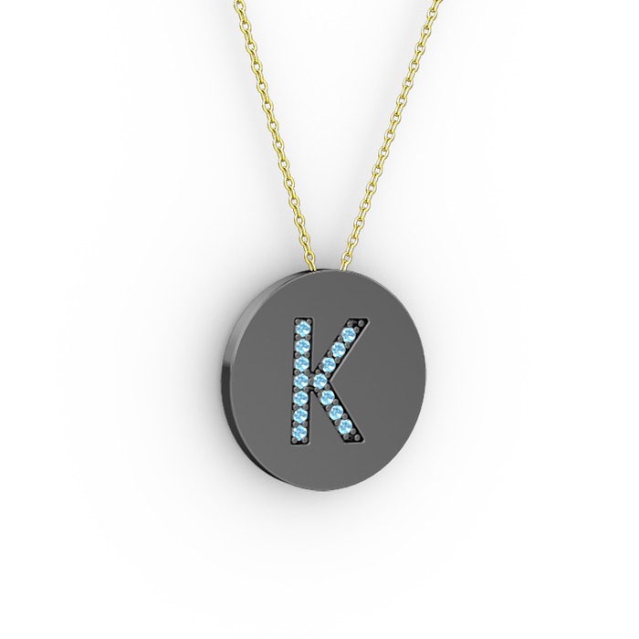 Akuamarin 925 ayar siyah rodyum kaplama gümüş kolye (40 cm altın rolo zincir)