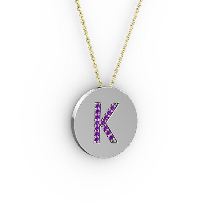 Ametist 14 ayar beyaz altın kolye (40 cm altın rolo zincir)
