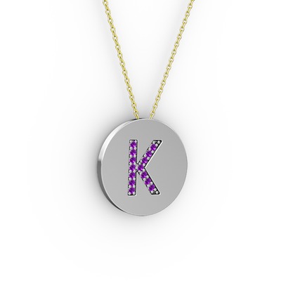 Ametist 8 ayar beyaz altın kolye (40 cm altın rolo zincir)