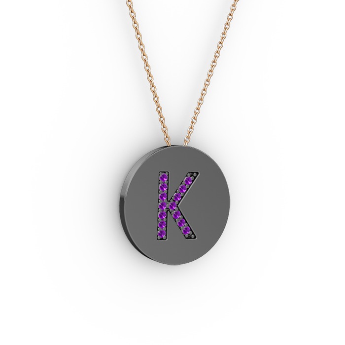 Ametist 925 ayar siyah rodyum kaplama gümüş kolye (40 cm rose altın rolo zincir)