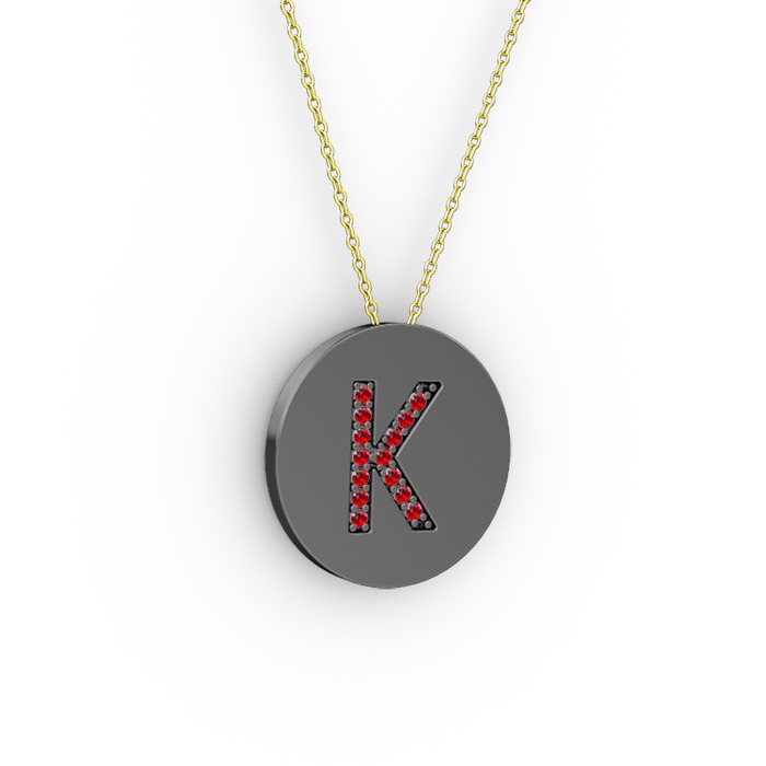 Garnet 925 ayar siyah rodyum kaplama gümüş kolye (40 cm altın rolo zincir)