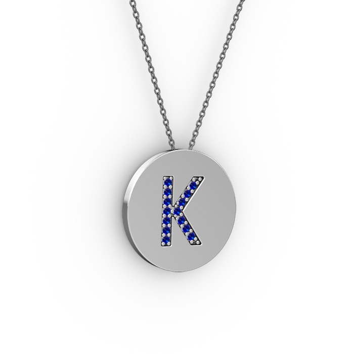 Lab safir 14 ayar beyaz altın kolye (40 cm gümüş rolo zincir)
