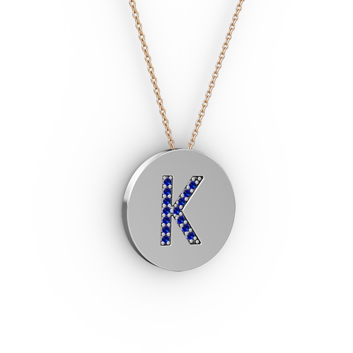 Lab safir 18 ayar beyaz altın kolye (40 cm gümüş rolo zincir)