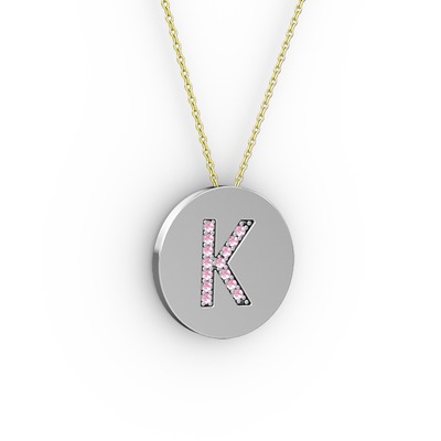 Pembe kuvars 18 ayar beyaz altın kolye (40 cm gümüş rolo zincir)