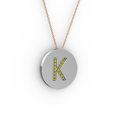 Peridot 18 ayar beyaz altın kolye (40 cm gümüş rolo zincir)