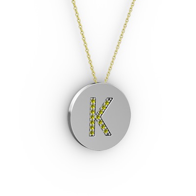 Peridot 8 ayar beyaz altın kolye (40 cm gümüş rolo zincir)