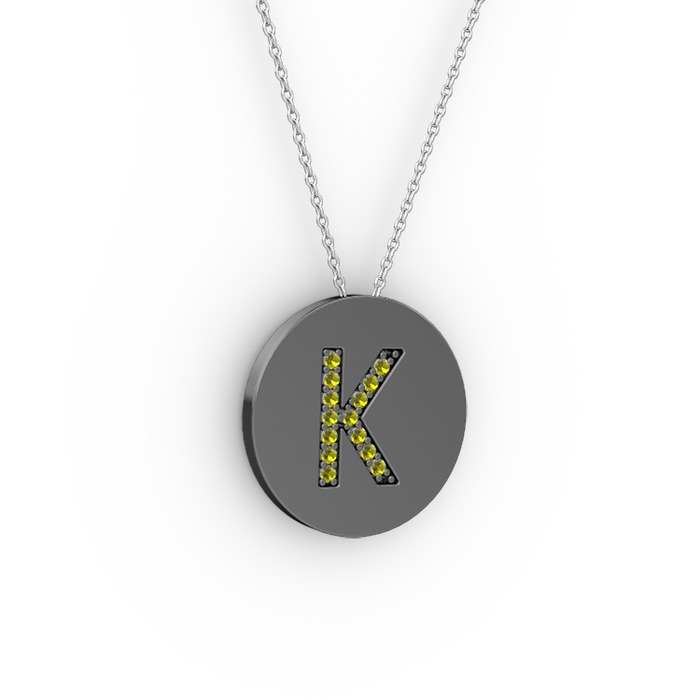 Peridot 925 ayar siyah rodyum kaplama gümüş kolye (40 cm beyaz altın rolo zincir)