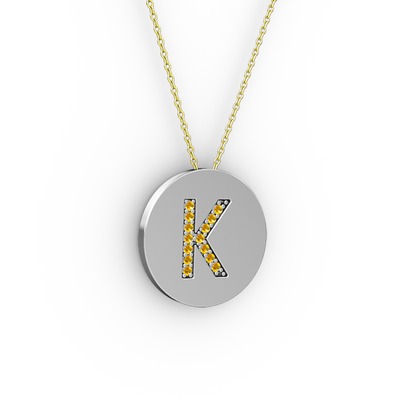 Sitrin 8 ayar beyaz altın kolye (40 cm gümüş rolo zincir)