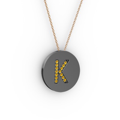 Sitrin 925 ayar siyah rodyum kaplama gümüş kolye (40 cm rose altın rolo zincir)