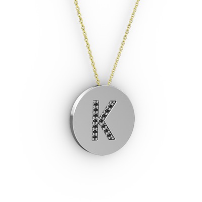 Siyah zirkon 18 ayar beyaz altın kolye (40 cm altın rolo zincir)