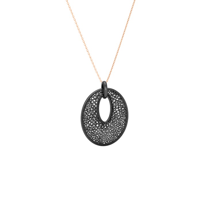 925 ayar siyah rodyum kaplama gümüş kolye (40 cm rose altın rolo zincir)