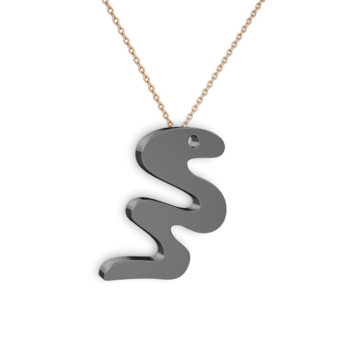 925 ayar siyah rodyum kaplama gümüş kolye (40 cm rose altın rolo zincir)