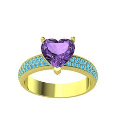 Ametist ve akuamarin 18 ayar rose altın yüzük