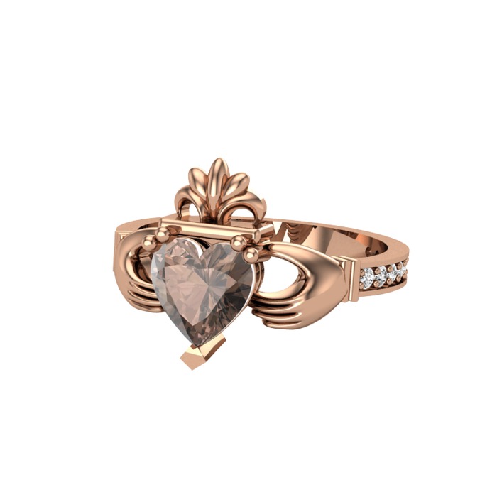 Dumanlı kuvars ve beyaz zirkon 18 ayar rose altın yüzük