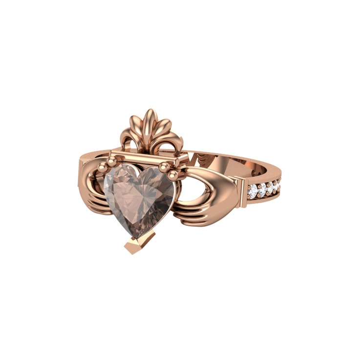 Dumanlı kuvars ve pırlanta 14 ayar rose altın yüzük (0.27 karat)