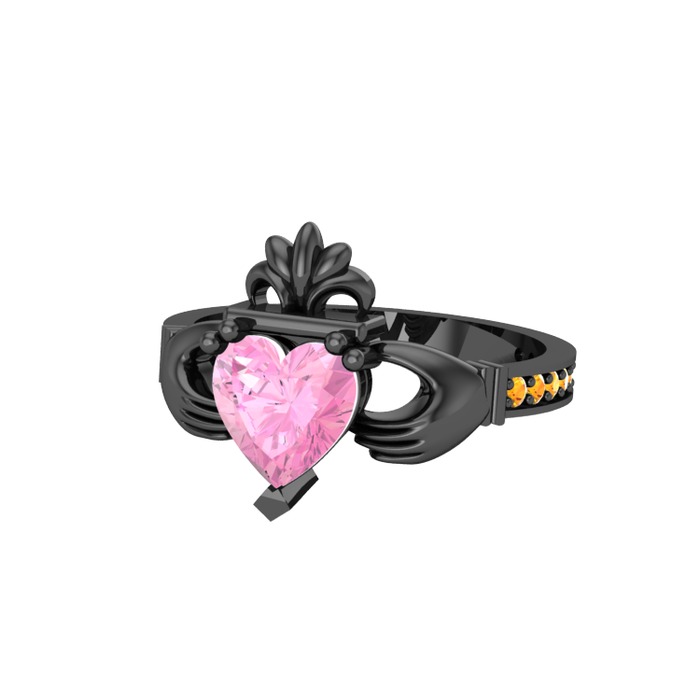 Pembe kuvars ve sitrin 925 ayar siyah rodyum kaplama gümüş yüzük