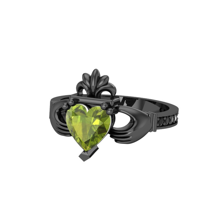 Peridot ve siyah zirkon 925 ayar siyah rodyum kaplama gümüş yüzük