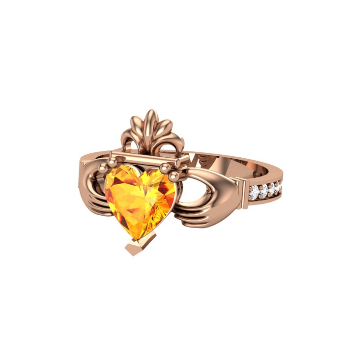 Sitrin ve pırlanta 8 ayar rose altın yüzük (0.27 karat)