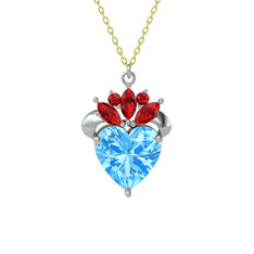 Akuamarin ve garnet 14 ayar beyaz altın kolye (40 cm beyaz altın rolo zincir)