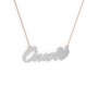 14 ayar beyaz altın kolye (4 karakterli el yazısı, 40 cm gümüş rolo zincir)