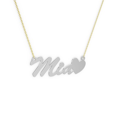 18 ayar beyaz altın kolye (3 karakterli el yazısı, 40 cm altın rolo zincir)