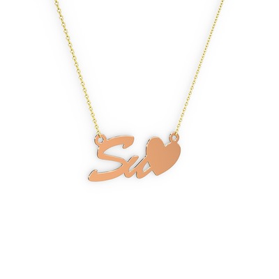 18 ayar rose altın kolye (2 karakterli el yazısı, 40 cm altın rolo zincir)