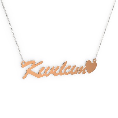8 ayar rose altın kolye (8 karakterli el yazısı, 40 cm gümüş rolo zincir)