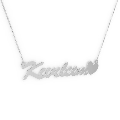 925 ayar gümüş kolye (8 karakterli el yazısı, 40 cm beyaz altın rolo zincir)