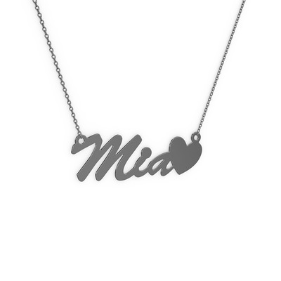 925 ayar siyah rodyum kaplama gümüş kolye (3 karakterli el yazısı, 40 cm gümüş rolo zincir)