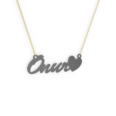 925 ayar siyah rodyum kaplama gümüş kolye (4 karakterli el yazısı, 40 cm altın rolo zincir)