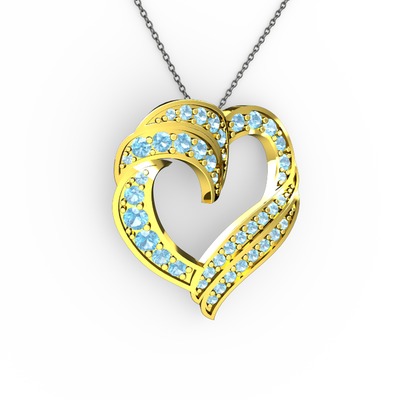 Akuamarin 14 ayar altın kolye (40 cm gümüş rolo zincir)