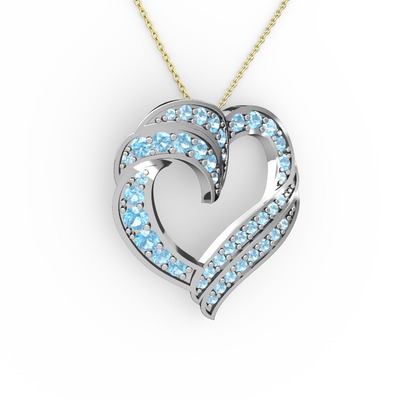 Akuamarin 14 ayar beyaz altın kolye (40 cm gümüş rolo zincir)