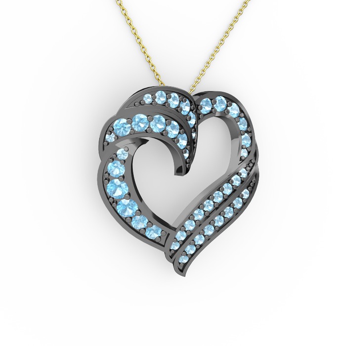 Akuamarin 925 ayar siyah rodyum kaplama gümüş kolye (40 cm altın rolo zincir)