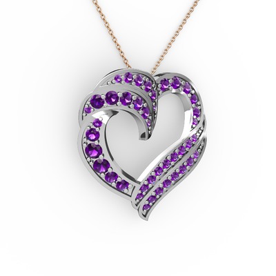 Ametist 14 ayar beyaz altın kolye (40 cm gümüş rolo zincir)