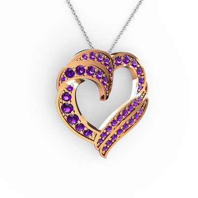 Ametist 14 ayar rose altın kolye (40 cm beyaz altın rolo zincir)
