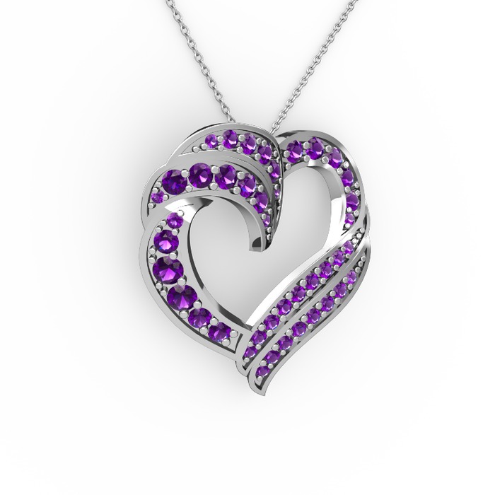 Ametist 925 ayar gümüş kolye (40 cm beyaz altın rolo zincir)