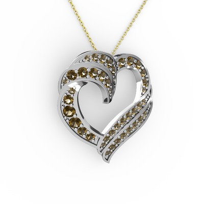 Dumanlı kuvars 14 ayar beyaz altın kolye (40 cm altın rolo zincir)