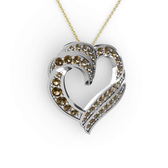 Dumanlı kuvars 18 ayar beyaz altın kolye (40 cm altın rolo zincir)