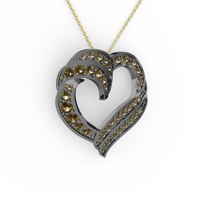 Dumanlı kuvars 925 ayar siyah rodyum kaplama gümüş kolye (40 cm altın rolo zincir)