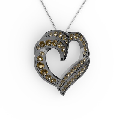 Dumanlı kuvars 925 ayar siyah rodyum kaplama gümüş kolye (40 cm beyaz altın rolo zincir)