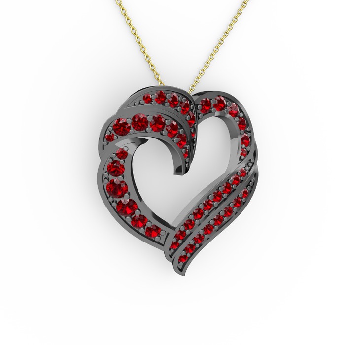 Garnet 925 ayar siyah rodyum kaplama gümüş kolye (40 cm altın rolo zincir)