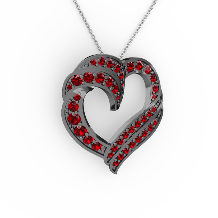 Garnet 925 ayar siyah rodyum kaplama gümüş kolye (40 cm beyaz altın rolo zincir)