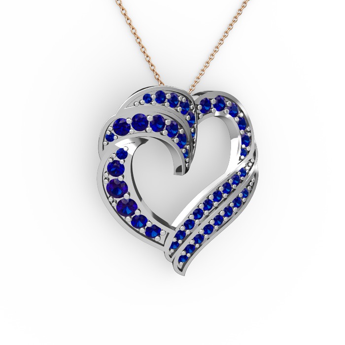 Lab safir 18 ayar beyaz altın kolye (40 cm rose altın rolo zincir)