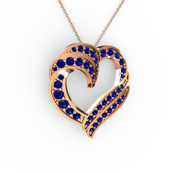 Lab safir 18 ayar rose altın kolye (40 cm rose altın rolo zincir)