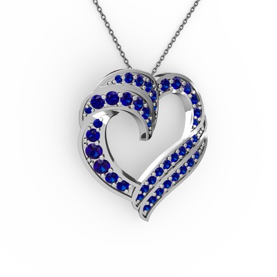 Lab safir 8 ayar beyaz altın kolye (40 cm gümüş rolo zincir)