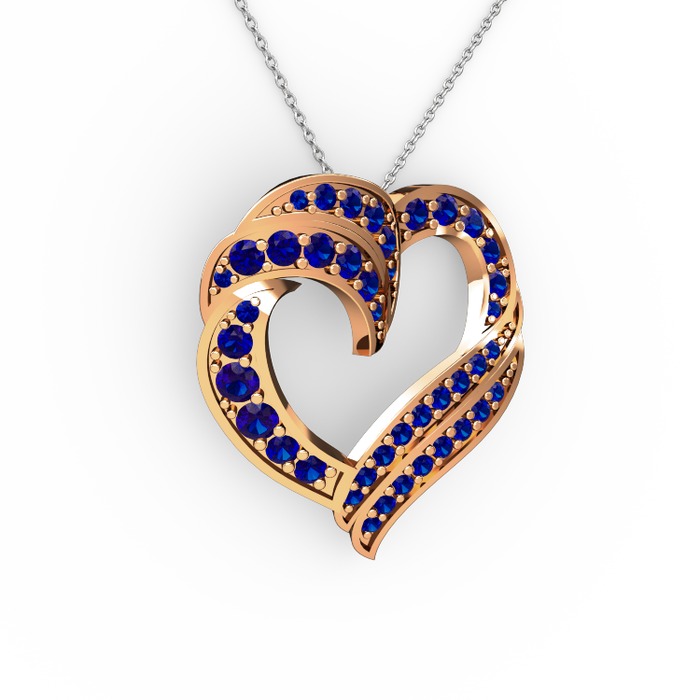 Lab safir 925 ayar rose altın kaplama gümüş kolye (40 cm beyaz altın rolo zincir)