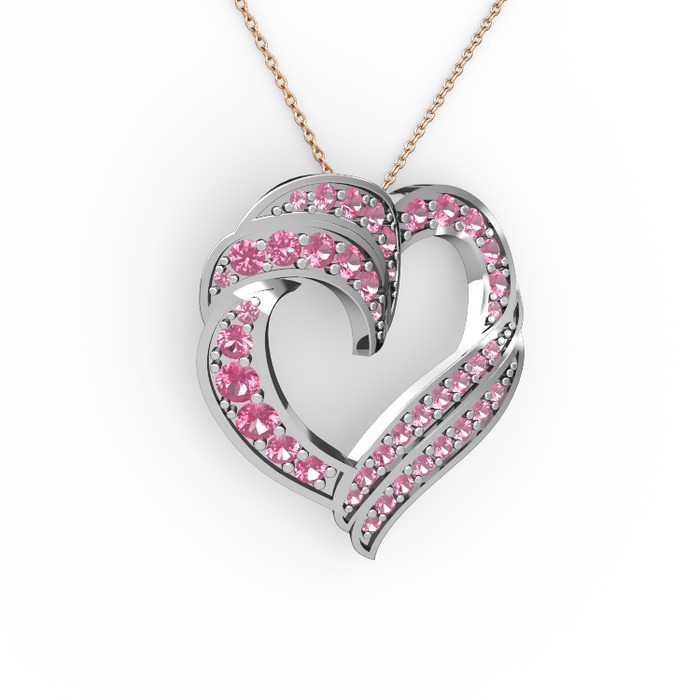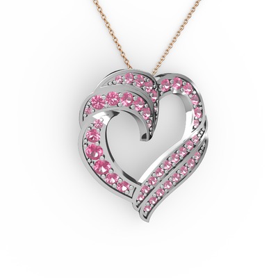 Pembe kuvars 14 ayar beyaz altın kolye (40 cm rose altın rolo zincir)