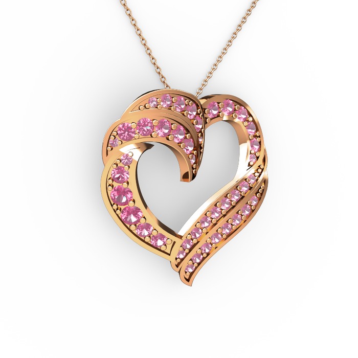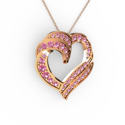 Pembe kuvars 14 ayar rose altın kolye (40 cm rose altın rolo zincir)