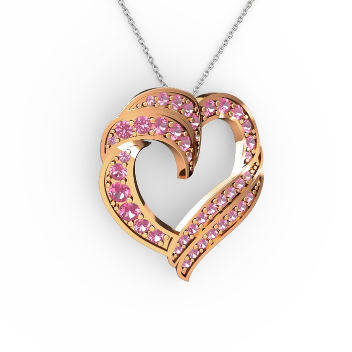 Pembe kuvars 18 ayar rose altın kolye (40 cm beyaz altın rolo zincir)