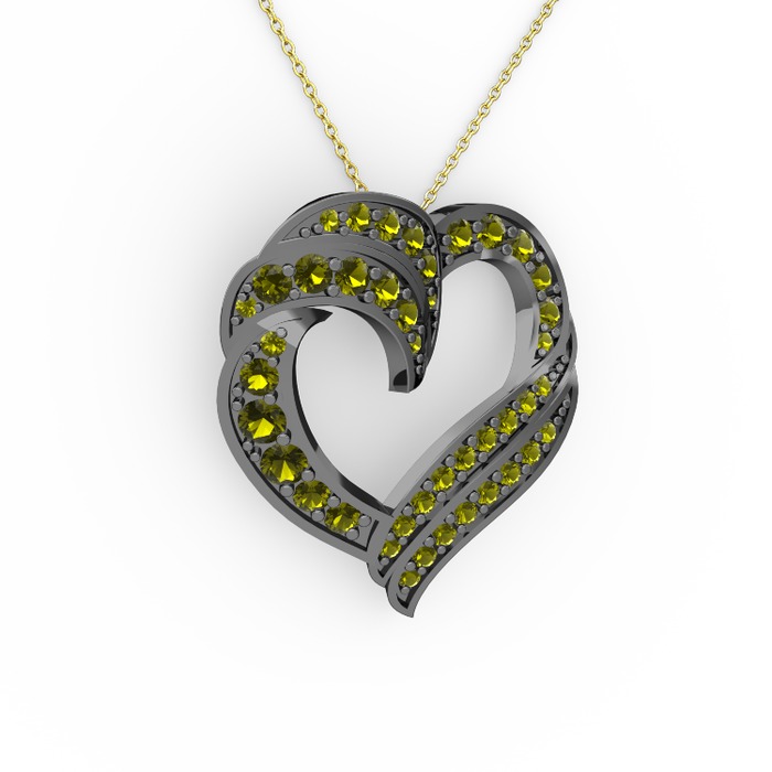 Peridot 925 ayar siyah rodyum kaplama gümüş kolye (40 cm altın rolo zincir)